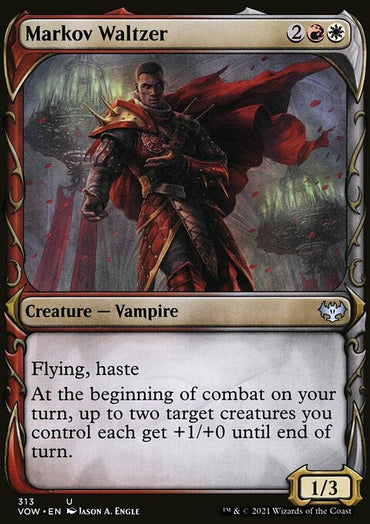 Markov Waltzer (Showcase Fang Frame) [Innistrad: Crimson Vow]Set: Innistrad: Crimson Vow Type: Creature — Vampire Rarity: Uncommon Cost: ...