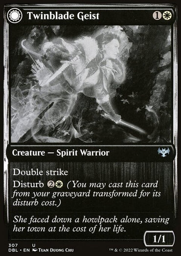 Twinblade Geist // Twinblade Invocation [Innistrad: Double Feature]Set: Innistrad: Double Feature Type: Creature — Spirit Warrior Rarity: Uncommon ...