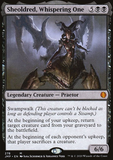 Sheoldred, Whispering One [Jumpstart]Set: Jumpstart Type: Legendary Creature — Phyrexian Praetor Rarity: Mythic C...