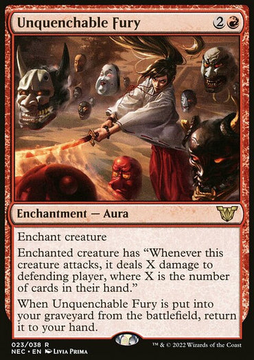 Unquenchable Fury [Kamigawa: Neon Dynasty Commander]Set: Kamigawa: Neon Dynasty Commander Type: Enchantment — Aura Rarity: Rare ...