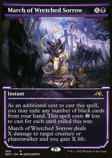 March of Wretched Sorrow (Showcase Soft Glow) [Kamigawa: Neon Dynasty]Set: Kamigawa: Neon Dynasty Type: Instant Rarity: Rare Cost: {X}{B...