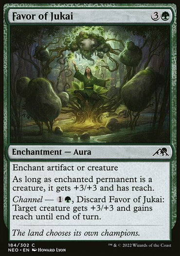 Favor of Jukai [Kamigawa: Neon Dynasty]Set: Kamigawa: Neon Dynasty Type: Enchantment — Aura Rarity: Common Cost: ...