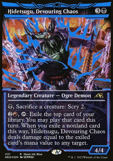 Hidetsugu, Devouring Chaos (Neon Ink Blue) [Kamigawa: Neon Dynasty]Set: Kamigawa: Neon Dynasty Type: Legendary Creature — Ogre Demon Rarity: Rare ...