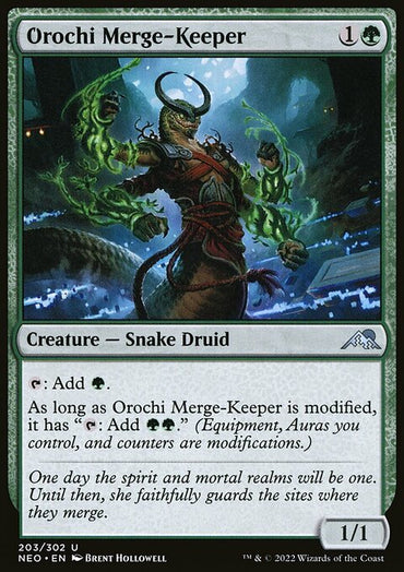 Orochi Merge-Keeper [Kamigawa: Neon Dynasty]Set: Kamigawa: Neon Dynasty Type: Creature — Snake Druid Rarity: Uncommon Co...
