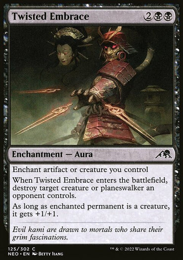 Twisted Embrace [Kamigawa: Neon Dynasty]Set: Kamigawa: Neon Dynasty Type: Enchantment — Aura Rarity: Common Cost: ...