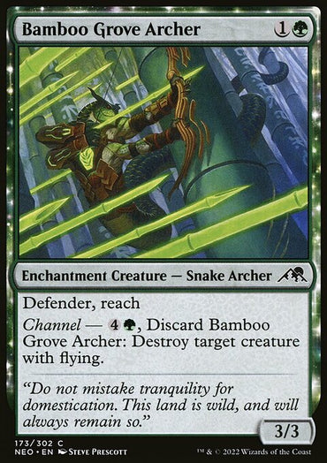 Bamboo Grove Archer [Kamigawa: Neon Dynasty]Set: Kamigawa: Neon Dynasty Type: Enchantment Creature — Snake Archer Rarity: Common ...