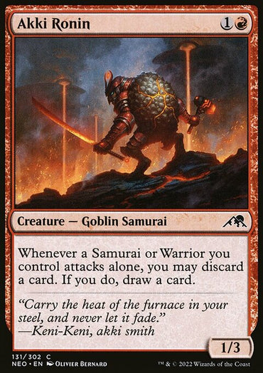 Akki Ronin [Kamigawa: Neon Dynasty]Set: Kamigawa: Neon Dynasty Type: Creature — Goblin Samurai Rarity: Common C...