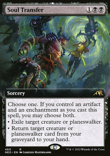 Soul Transfer (Extended Art) [Kamigawa: Neon Dynasty]Set: Kamigawa: Neon Dynasty Type: Sorcery Rarity: Rare Cost: {1}{B...