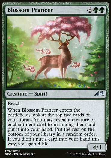 Blossom Prancer [Kamigawa: Neon Dynasty]Set: Kamigawa: Neon Dynasty Type: Creature — Spirit Rarity: Uncommon Cost: ...