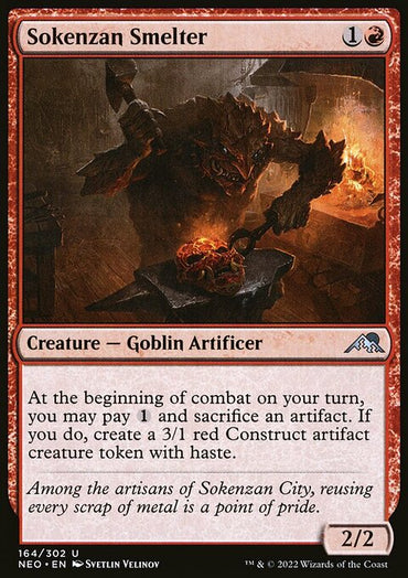 Sokenzan Smelter [Kamigawa: Neon Dynasty]Set: Kamigawa: Neon Dynasty Type: Creature — Goblin Artificer Rarity: Uncommon ...