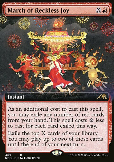 March of Reckless Joy (Extended Art) [Kamigawa: Neon Dynasty]Set: Kamigawa: Neon Dynasty Type: Instant Rarity: Rare Cost: {X}{R...