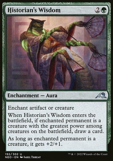 Historian's Wisdom [Kamigawa: Neon Dynasty]Set: Kamigawa: Neon Dynasty Type: Enchantment — Aura Rarity: Uncommon Cost: ...