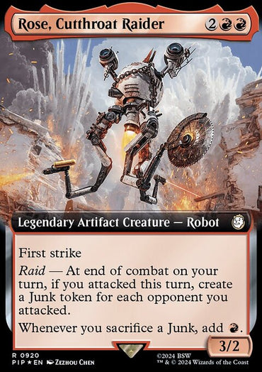 Rose, Cutthroat Raider (Extended Art) (Surge Foil) [Fallout]Set: Fallout Type: Legendary Artifact Creature — Robot Rarity: Rare Cost: ...