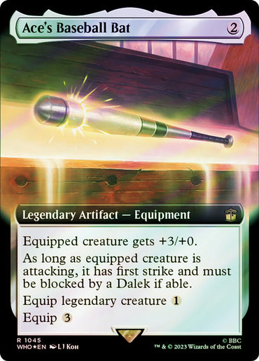 Ace's Baseball Bat (Extended Art) (Surge Foil) [Doctor Who]Set: Doctor Who Type: Legendary Artifact — Equipment Rarity: Rare Cost: ...