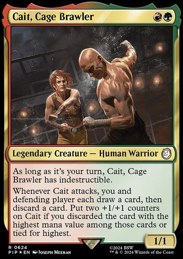 Cait, Cage Brawler (Surge Foil) [Fallout]Set: Fallout Type: Legendary Creature — Human Warrior Rarity: Rare Cost: ...