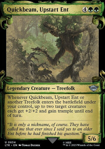 Quickbeam, Upstart Ent [The Lord of the Rings: Tales of Middle-Earth Showcase Scrolls]Set: The Lord of the Rings: Tales of Middle-Earth Showcase Scrolls Type: Legendary Creature — Treefolk Rarity:...