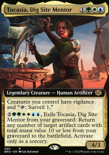 Tocasia, Dig Site Mentor (Extended Art) [The Brothers' War]Set: The Brothers' War Type: Legendary Creature — Human Artificer Rarity: Rare ...