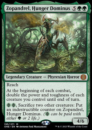 Zopandrel, Hunger Dominus [Phyrexia: All Will Be One Prerelease Promos]Set: Phyrexia: All Will Be One Prerelease Promos Type: Legendary Creature — Phyrexian Horror Rarity: ...