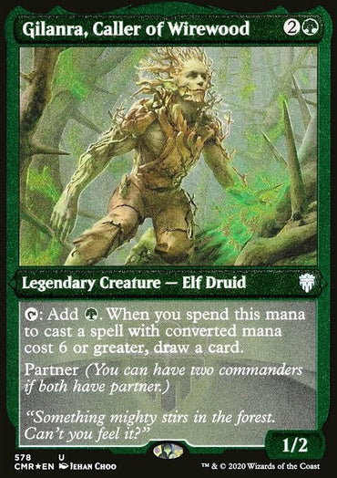 Gilanra, Caller of Wirewood (Etched) [Commander Legends]Set: Commander Legends Type: Legendary Creature — Elf Druid Rarity: Uncommon ...