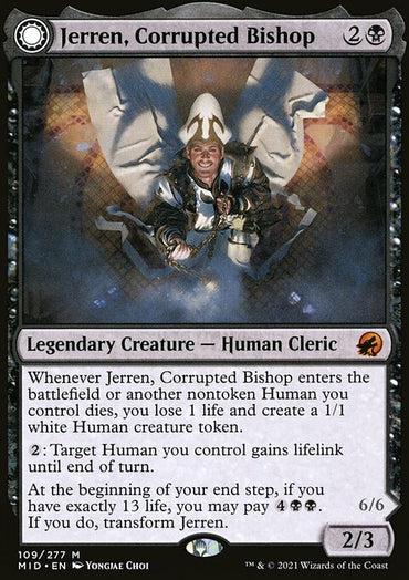 Jerren, Corrupted Bishop // Ormendahl, the Corrupted [Innistrad: Midnight Hunt]Set: Innistrad: Midnight Hunt Type: Legendary Creature — Human Cleric Rarity: Mythic ...