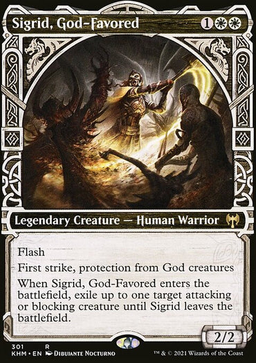 Sigrid, God-Favored (Showcase) [Kaldheim]Set: Kaldheim Type: Legendary Creature — Human Warrior Rarity: Rare Cost: ...
