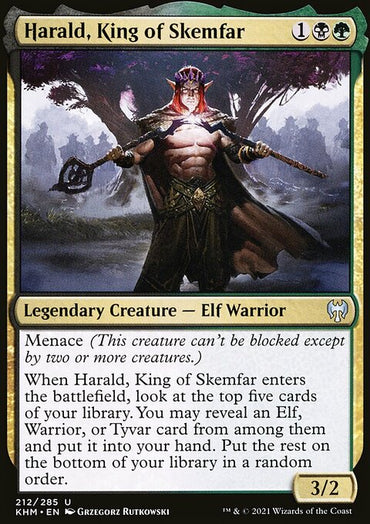Harald, King of Skemfar [Kaldheim]Set: Kaldheim Type: Legendary Creature — Elf Warrior Rarity: Uncommon Cost: ...
