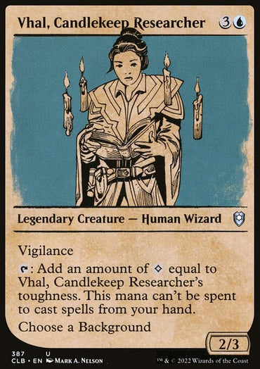 Vhal, Candlekeep Researcher [Commander Legends: Battle for Baldur's Gate]Set: Commander Legends: Battle for Baldur's Gate Type: Legendary Creature — Human Wizard Rarity: Unc...