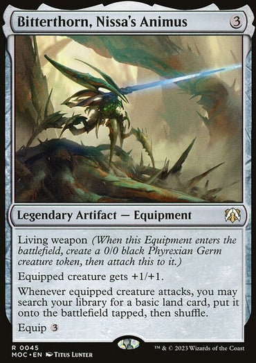 Bitterthorn, Nissa's Animus [March of the Machine Commander]Set: March of the Machine Commander Type: Legendary Creature — Equipment Rarity: Rare ...