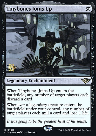 Tinybones Joins Up [Outlaws of Thunder Junction Prerelease Promos]Set: Outlaws of Thunder Junction Prerelease Promos Type: Legendary Enchantment Rarity: Rare ...
