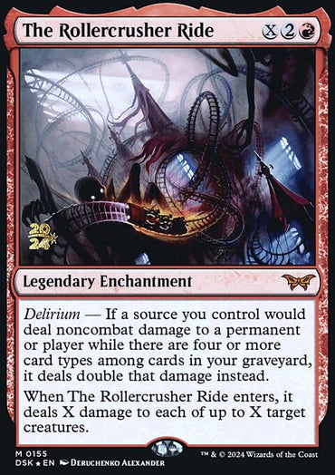 The Rollercrusher Ride (0155) (Promo Pack) [Duskmourn: House of Horror Promos]Set: Duskmourn: House of Horror Promos Type: Legendary Enchantment Rarity: Mythic ...
