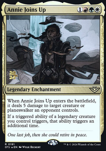 Annie Joins Up [Outlaws of Thunder Junction Prerelease Promos]Set: Outlaws of Thunder Junction Prerelease Promos Type: Legendary Enchantment Rarity: Rare ...