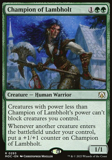 Champion of Lambholt [March of the Machine Commander]Set: March of the Machine Commander Type: Creature — Human Warrior Rarity: Rare ...