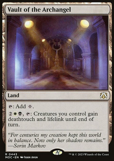 Vault of the Archangel [March of the Machine Commander]Set: March of the Machine Commander Type: Land Rarity: Rare {T}: Add ...