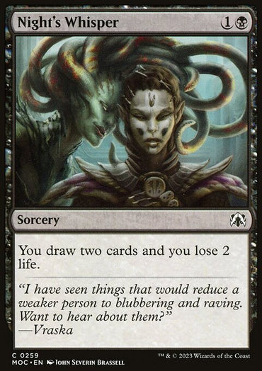 Night's Whisper [March of the Machine Commander]Set: March of the Machine Commander Type: Sorcery Rarity: Common Cost: ...