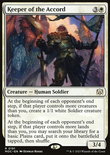 Keeper of the Accord [March of the Machine Commander]Set: March of the Machine Commander Type: Creature — Human Soldier Rarity: Rare ...