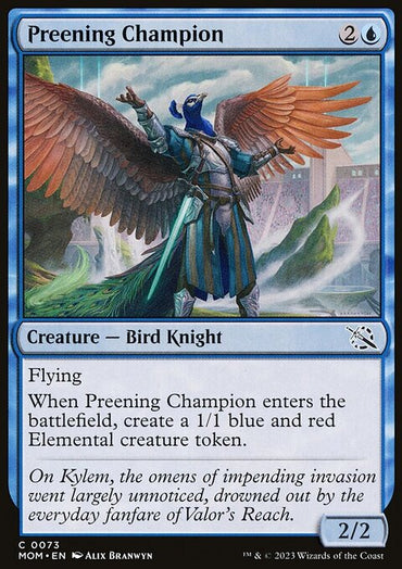 Preening Champion [March of the Machine]Set: March of the Machine Type: Creature — Bird Knight Rarity: Common Cost: ...