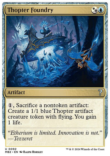 Thopter Foundry (White Border) [Mystery Booster 2]Set: Mystery Booster 2 Type: Artifact Rarity: Uncommon Cost: {W/B}...