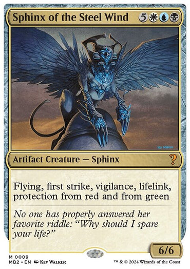 Sphinx of the Steel Wind (White Border) [Mystery Booster 2]Set: Mystery Booster 2 Type: Artifact Creature — Sphinx Rarity: Mythic Cost:...
