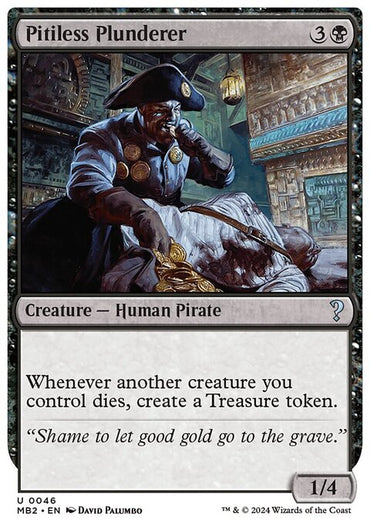 Pitiless Plunderer (White Border) [Mystery Booster 2]Set: Mystery Booster 2 Type: Creature — Human Pirate Rarity: Uncommon Cost: ...