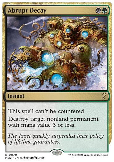 Abrupt Decay (White Border) [Mystery Booster 2]Set: Mystery Booster 2 Type: Instant Rarity: Rare Cost: {B}{G} ...