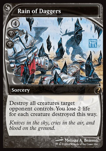 Rain of Daggers (Future Sight) [Mystery Booster 2]Set: Mystery Booster 2 Type: Sorcery Rarity: Rare Cost: {4}{B}{B} ...