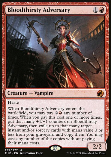 Bloodthirsty Adversary [Innistrad: Midnight Hunt]Set: Innistrad: Midnight Hunt Type: Creature — Vampire Rarity: Mythic Cost: ...