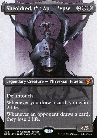 Sheoldred, the Apocalypse (Borderless Concept Praetors) [Phyrexia: All Will Be One]Set: Phyrexia: All Will Be One Type: Legendary Creature — Phyrexian Praetor Rarity: Mythic ...