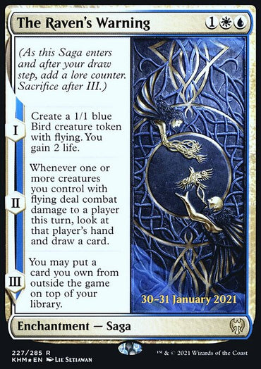 The Raven's Warning [Kaldheim Prerelease Promos]Set: Kaldheim Prerelease Promos Type: Enchantment — Saga Rarity: Mythic Cost...