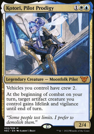 Kotori, Pilot Prodigy [Kamigawa: Neon Dynasty Commander]Set: Kamigawa: Neon Dynasty Commander Type: Legendary Creature — Moonfolk Pilot Rarity: Mythic ...