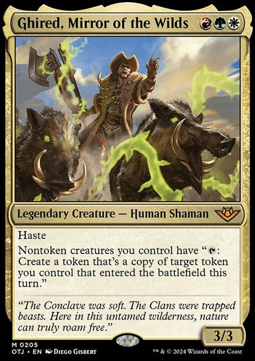 Ghired, Mirror of the Wilds [Outlaws of Thunder Junction]Set: Outlaws of Thunder Junction Type: Legendary Creature — Human Shaman Rarity: Mythic ...