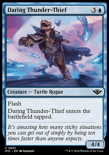Daring Thunder-Thief [Outlaws of Thunder Junction]Set: Outlaws of Thunder Junction Type: Creature — Turtle Rogue Rarity: Common ...