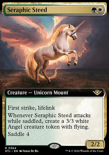 Seraphic Steed (Extended Art) [Outlaws of Thunder Junction]Set: Outlaws of Thunder Junction Type: Creature — Unicorn Mount Rarity: Rare ...
