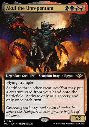 Akul the Unrepentant (Extended Art) [Outlaws of Thunder Junction]Set: Outlaws of Thunder Junction Type: Legendary Creature — Scorpion Dragon Rogue Rarity: Rare ...