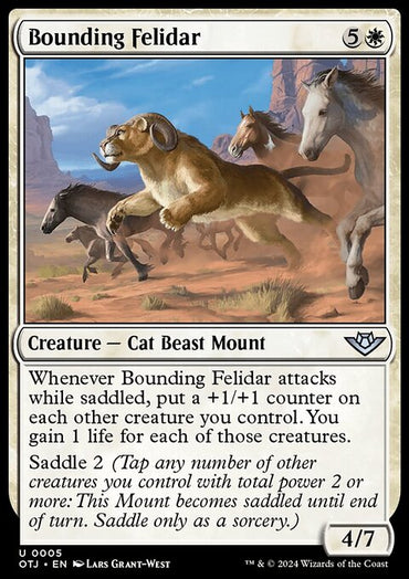 Bounding Felidar [Outlaws of Thunder Junction]Set: Outlaws of Thunder Junction Type: Creature — Cat Beast Mount Rarity: Uncommon ...